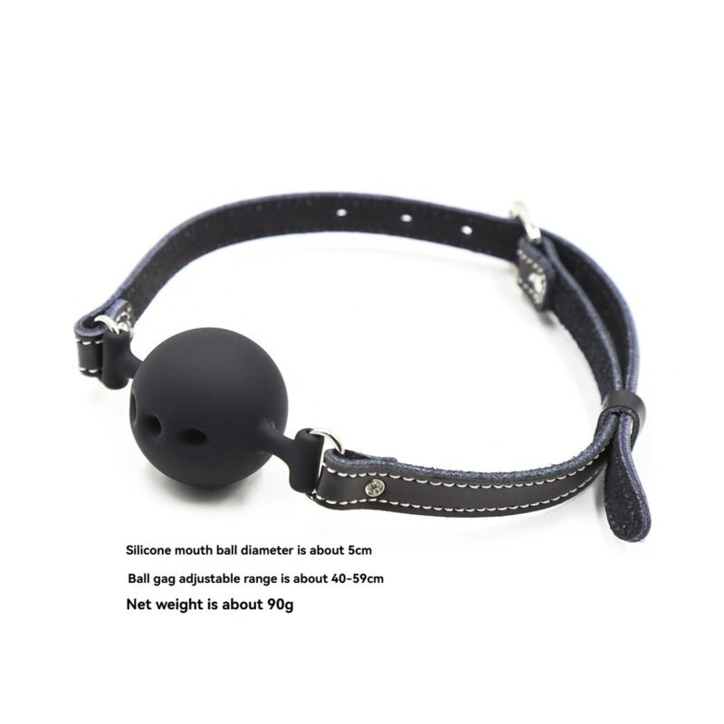 Ball Gag: The silicone ball gag, with a 5cm diameter ball, has an adjustable strap ranging from 40 – 59cm and weighs about 90g. It’s designed for both comfort and restriction.