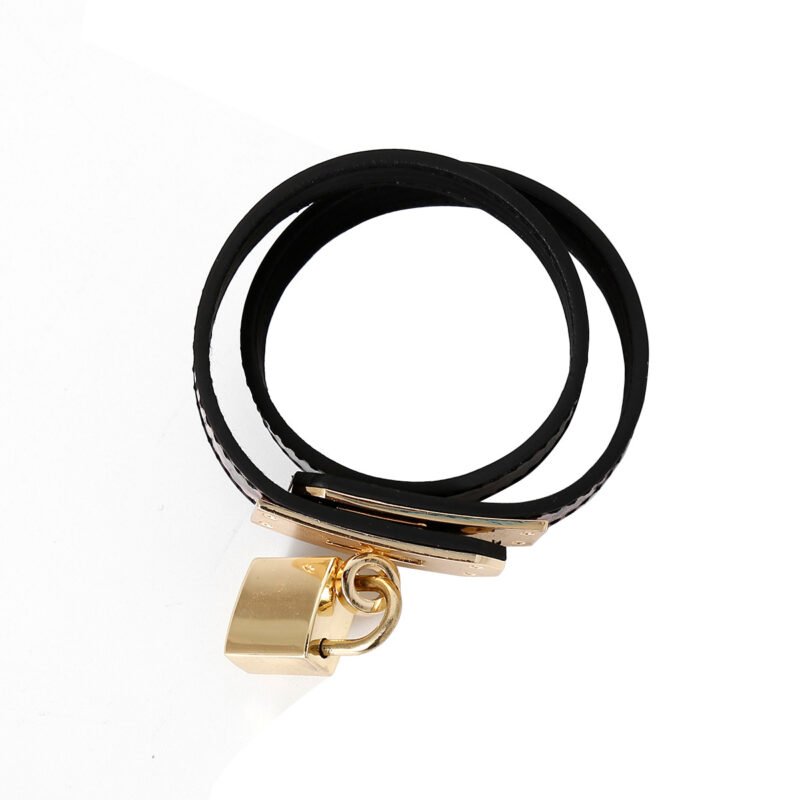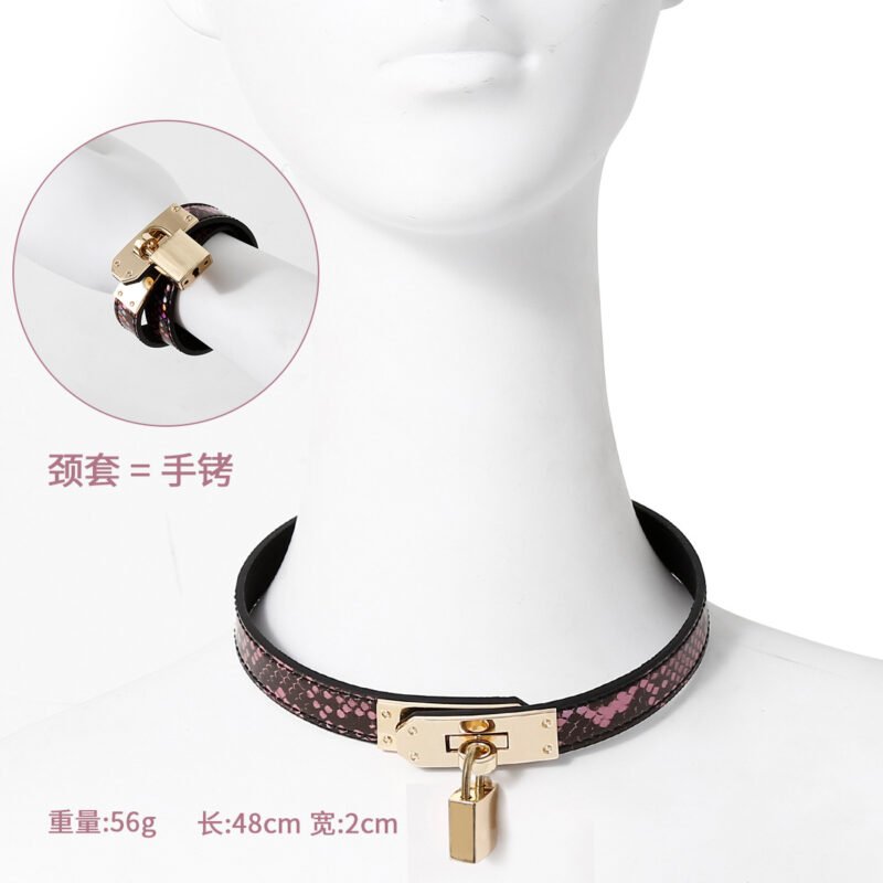 Hardware: The collar is adorned with shiny gold – toned metal hardware, including a prominent lock and clasp. The lock adds an element of mystery and control, making it a statement piece.