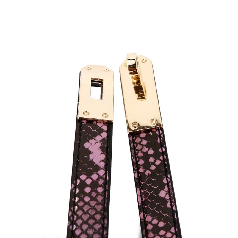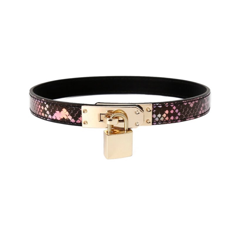 Design: Available in classic black and a stylish pink snake – print pattern, it features a sleek, slender design that sits elegantly around the neck. The high – quality leather ensures durability and comfort.