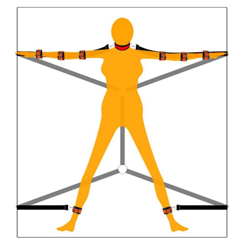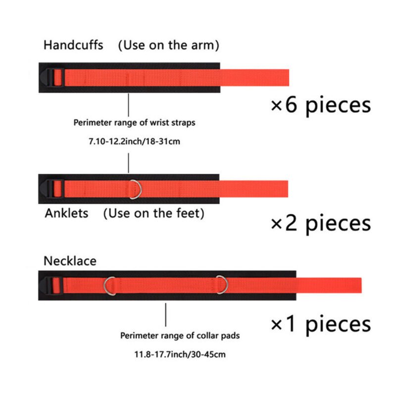 This orange – black webbing bondage set is made of sturdy and durable webbing material, with a striking color combination. The set includes 6 arm straps, 2 ankle straps, and 1 collar. The adjustable range for the neck is 30 – 46cm, and for both the arms and ankles is 18 – 33cm, flexibly fitting different body sizes. Weighing 435g, it is suitable for private adult consensual erotic scenarios. By restricting different parts of the body, it adds fun to interactions. Please abide by moral and legal norms when using.