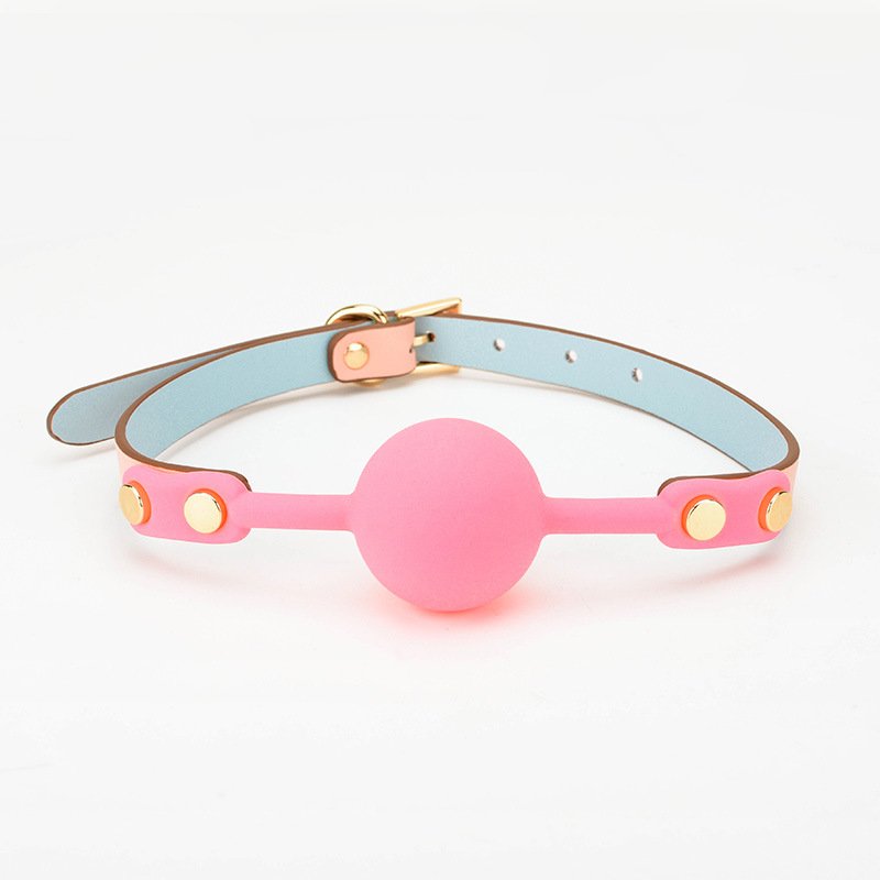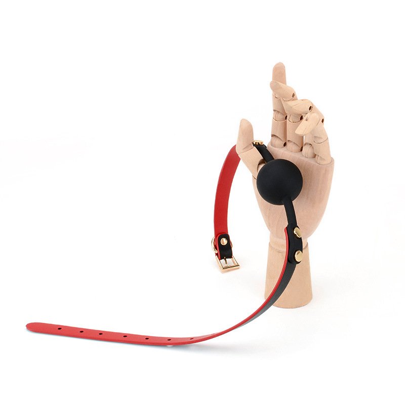 This restraint strap is made from a soft silicone ball and a comfortable PU leather strap. The silicone ball is food-grade, safe, and odorless. The leather strap is adjustable to ensure a comfortable fit for various sizes. Available in multiple color combinations and ball types, including Black & Red – Solid, Black – Solid, Pink & Blue – Solid, Black – Hollow