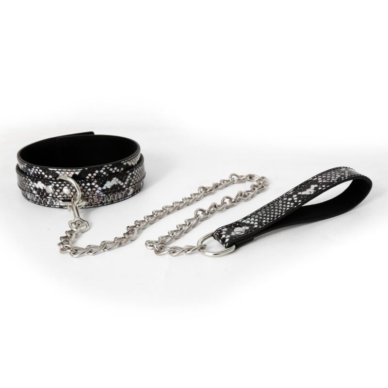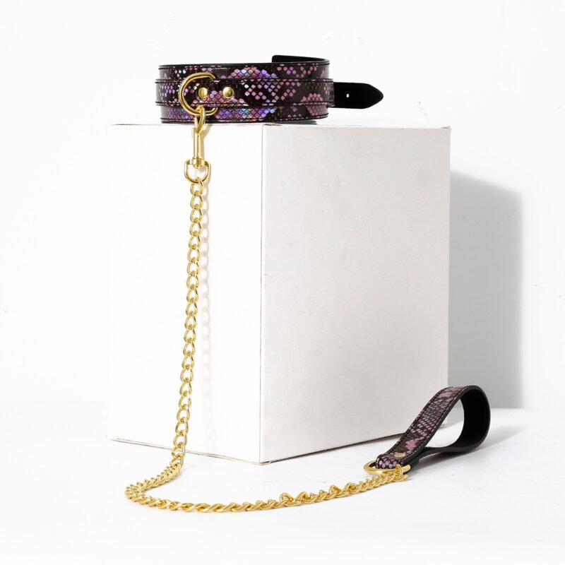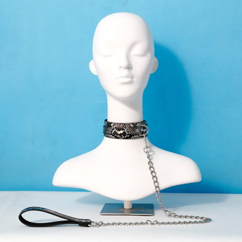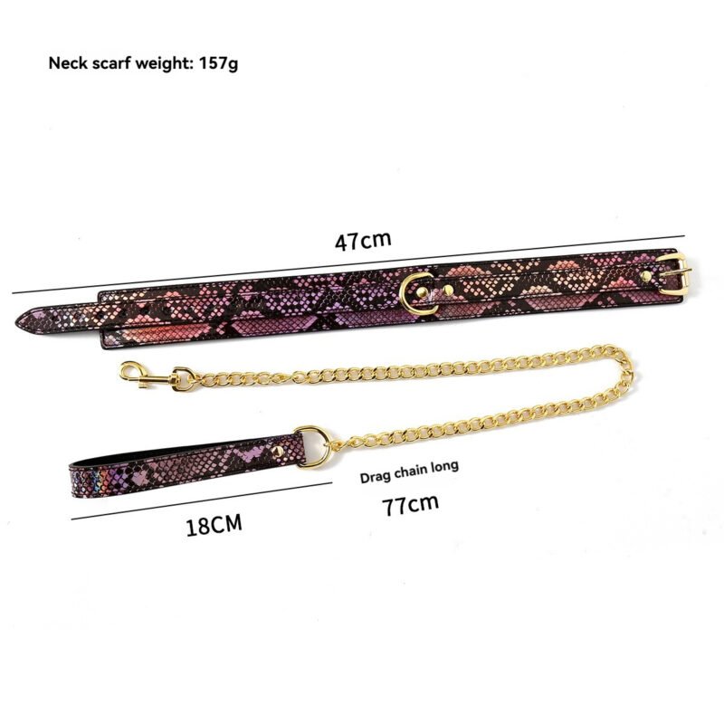 This set of collar and chain leash is uniquely designed with a sense of fashion. It is made of snake – print leather and comes in classic red – print and white – print styles. The collar is approximately 47cm long, equipped with metal buckles that are sturdy and easy to adjust. The chain connected by the metal ring is about 77cm long, and the end handle is 18cm long. The collar weighs 157g.