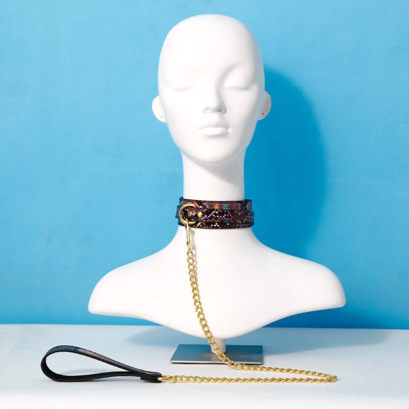 The overall style is flamboyant and personalized, combining punk and fashion elements. It is suitable for BDSM – related scenarios, themed parties, or role – playing activities, and can showcase the unique taste and trendy attitude of the wearer, adding unique charm to the look.